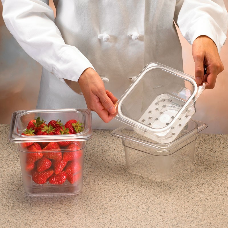 63CLRCW-135 / Recipiente colador de policarbonato GN 1/6 - (16,2 x 17,6 x 7,6 cm)