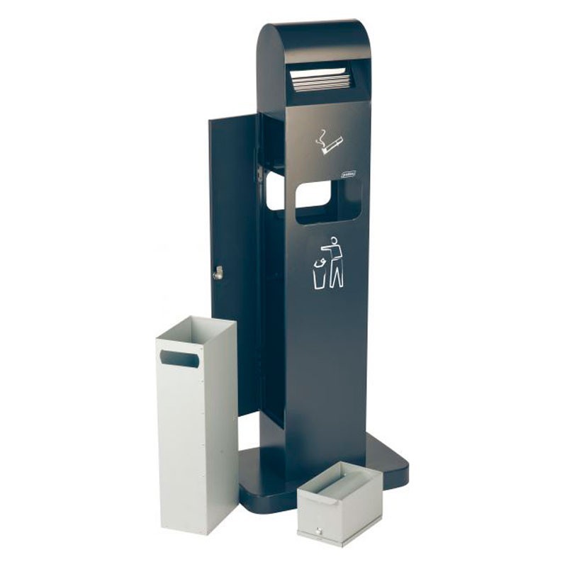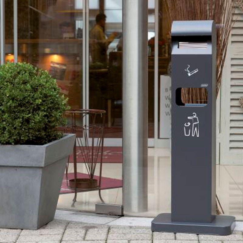 Probbax - AT-0262-DGRY / Cenicero de suelo para exterior con papelera - 40 x 26 x 104 cm - 12,5 L