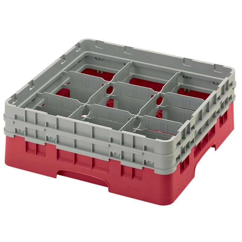 Cambro - 9S434-416 / Cesta de lavado (50 x 50 cm) para copas y vasos con 9 comp. 2 alt. - dia. máx. 14,8 cm alt. máx. 13,5 cm