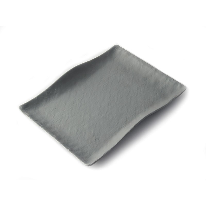Adrier - RCTP2719-GRY / Colección TERRAL - Plato rectangular mediano con borde ondeado - (27 x 19 x 3,5 cm)