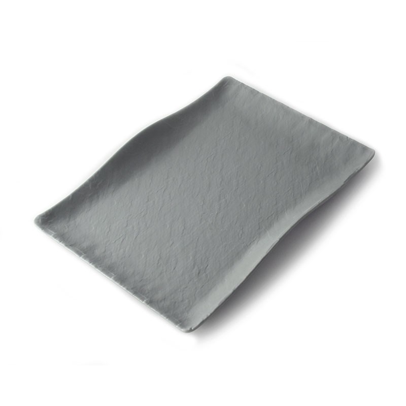 Adrier - RCTP3221-GRY / Colección TERRAL - Plato rectangular grande con borde ondeado - (32 x 21 x 3,5 cm)